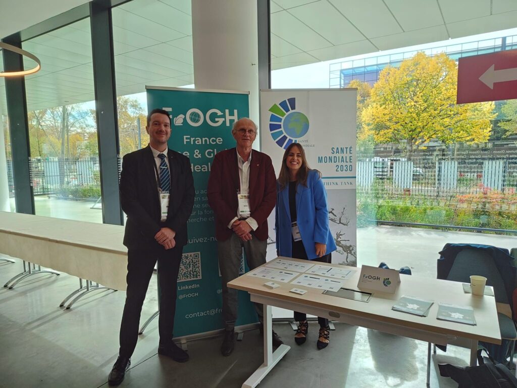 La participation de FrOGH a été marquée par la présence de Frédéric Goyet, Secrétaire adjoint du Bureau Santé Mondiale 2030, Jessica Borges, Coordinatrice de Santé Mondiale 2030, et Cédric Colmar, Vice-président de FrOGH, témoignant de l’engagement du réseau en faveur de politiques de santé durables, intégrées et collaboratives.